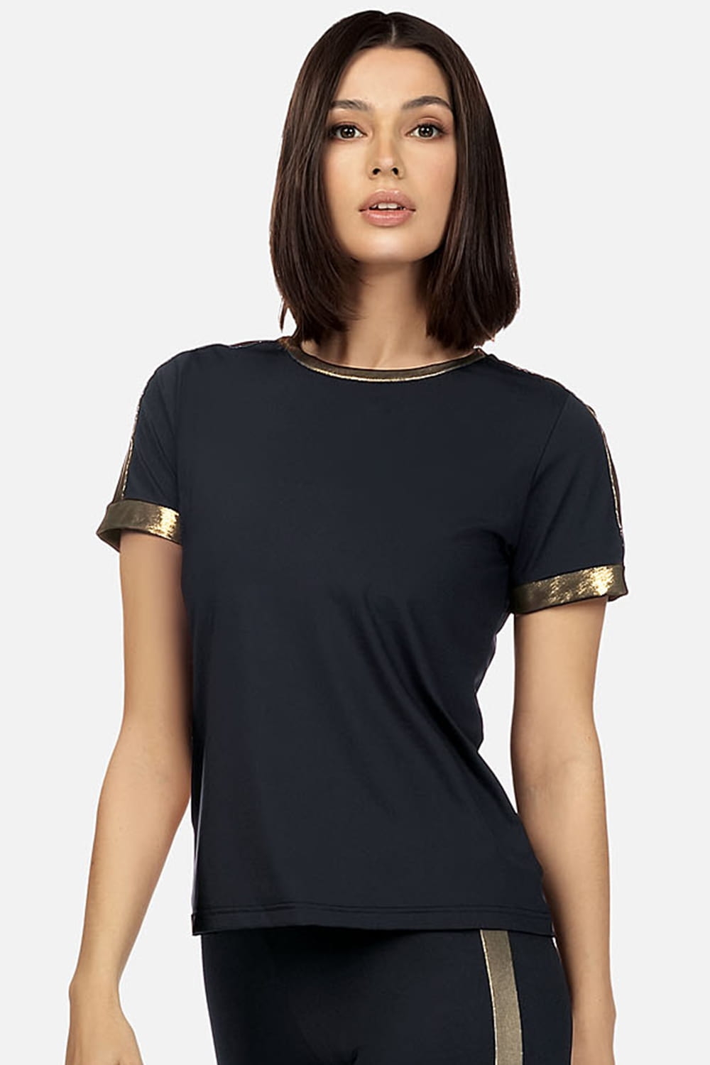 Elegancki czarno złoty t shirt Casual BLU02/518