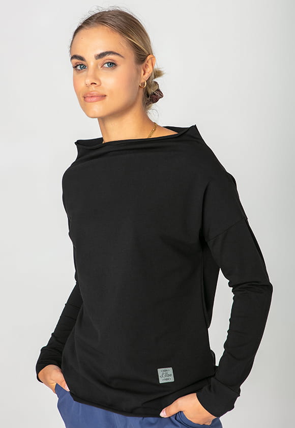 BLUZKA NECK długi rękaw z bawełny organicznej czarna